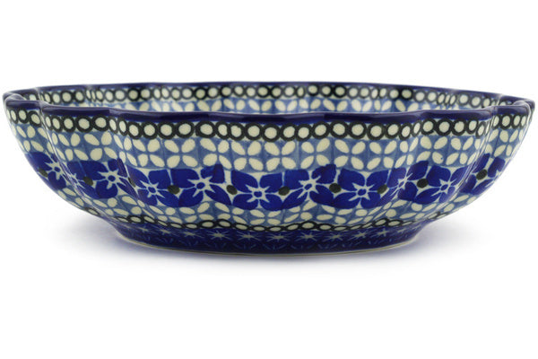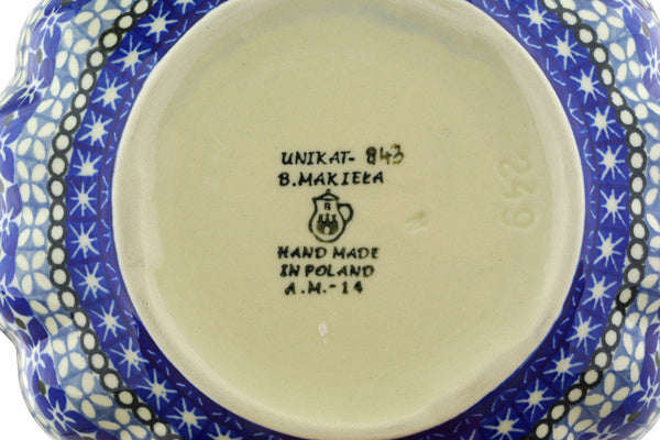 This Brilliant Blues 7" Scalloped Bowl was handmade and hand decorated in Boleslawiec, Poland by skilled artisans according to old traditional methods. This is a Polish pottery Signature Unikat, which means that it has been hand painted with both sponges and brushes and it is signed by the artist who painted it. Unikat pieces are the most intricate works of art. Larger Unikat items take hours of very careful work to finish. This Polish stoneware is microwave, dishwasher, freezer, and oven safe up to 480°F. It does not contain lead or cadmium. It is part of the Brilliant Blues Collection.