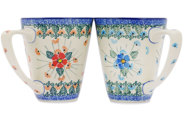 This Mix Set of Two Mugs was handmade and hand decorated in Boleslawiec, Poland by skilled artisans according to old traditional methods. This Polish stoneware is microwave, dishwasher, freezer, and oven safe up to 480°F. It does not contain lead or cadmium. It is part of the Mix Collection.