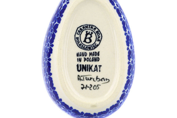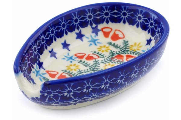 This Wreath Of Bells 5" Spoon Rest was handmade and hand decorated in Boleslawiec, Poland by skilled artisans according to old traditional methods. This Polish stoneware is microwave, dishwasher, freezer, and oven safe up to 480°F. It does not contain lead or cadmium. It is part of the Wreath Of Bells Collection.
