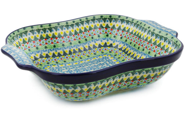 This Christmas Forest 11" Square Baker with Handles was handmade and hand decorated in Boleslawiec, Poland by skilled artisans according to old traditional methods. This is a Polish pottery Signature Unikat, which means that it has been hand painted with both sponges and brushes and it is signed by the artist who painted it. Unikat pieces are the most intricate works of art. Larger Unikat items take hours of very careful work to finish. This Polish stoneware is microwave, dishwasher, freezer, and oven safe up to 480°F. It does not contain lead or cadmium. It is part of the Christmas Forest Collection.