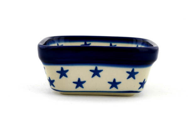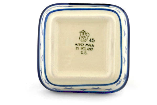 This Starburst Americana 4" Square Bowl was handmade and hand decorated in Boleslawiec, Poland by skilled artisans according to old traditional methods. This Polish stoneware is microwave, dishwasher, freezer, and oven safe up to 480°F. It does not contain lead or cadmium. It is part of the Starburst Americana Collection.