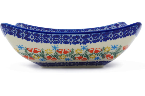This Wreath Of Bells 8" Square Bowl was handmade and hand decorated in Boleslawiec, Poland by skilled artisans according to old traditional methods. This Polish stoneware is microwave, dishwasher, freezer, and oven safe up to 480°F. It does not contain lead or cadmium. It is part of the Wreath Of Bells Collection.