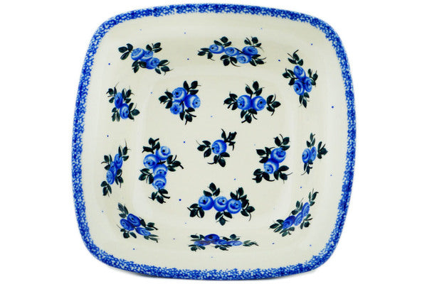 This Blue Berry Special 7" Square Bowl was handmade and hand decorated in Boleslawiec, Poland by skilled artisans according to old traditional methods. This is a Polish pottery Signature Unikat, which means that it has been hand painted with both sponges and brushes and it is signed by the artist who painted it. Unikat pieces are the most intricate works of art. Larger Unikat items take hours of very careful work to finish. This Polish stoneware is microwave, dishwasher, freezer, and oven safe up to 480°F. It does not contain lead or cadmium. It is part of the Blue Berry Special Collection.