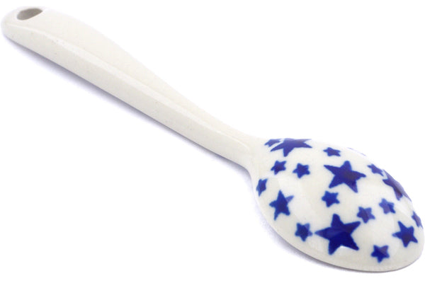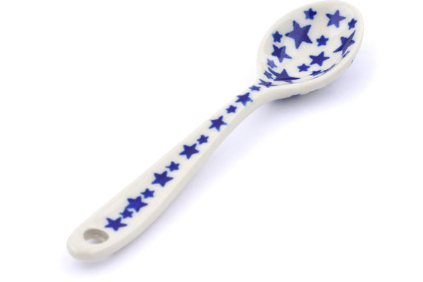 This Starlight 5" Sugar Spoon was handmade and hand decorated in Boleslawiec, Poland by skilled artisans according to old traditional methods. This Polish stoneware is microwave, dishwasher, freezer, and oven safe up to 480°F. It does not contain lead or cadmium. It is part of the Starlight Collection.