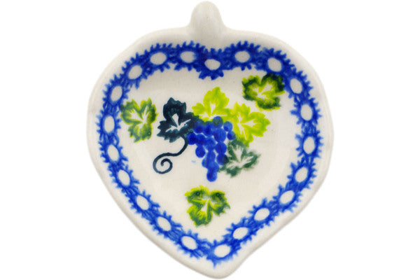 This Blue Grape Vines 4" Tea Bag or Lemon Plate was handmade and hand decorated in Boleslawiec, Poland by skilled artisans according to old traditional methods. This Polish stoneware is microwave, dishwasher, freezer, and oven safe up to 480°F. It does not contain lead or cadmium. It is part of the Blue Grape Vines Collection.