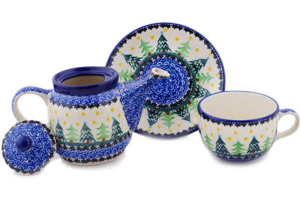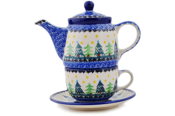 This Christmas Evergreen 17 oz Tea Set for One was handmade and hand decorated in Boleslawiec, Poland by skilled artisans according to old traditional methods. This Polish stoneware is microwave, dishwasher, freezer, and oven safe up to 480°F. It does not contain lead or cadmium. It is part of the Christmas Evergreen Collection.