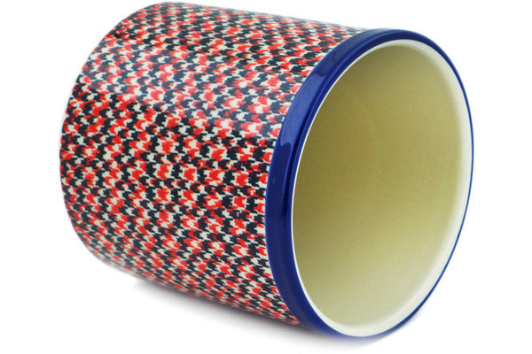 This Red Houndstooth 6" Utensil Jar was handmade and hand decorated in Boleslawiec, Poland by skilled artisans according to old traditional methods. This Polish stoneware is microwave, dishwasher, freezer, and oven safe up to 480°F. It does not contain lead or cadmium. It is part of the Red Houndstooth Collection.