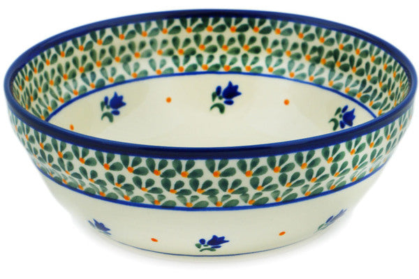 This Violet Tulips 7" Bowl was handmade and hand decorated in Boleslawiec, Poland by skilled artisans according to old traditional methods. This Polish stoneware is microwave, dishwasher, freezer, and oven safe up to 480°F. It does not contain lead or cadmium. It is part of the Violet Tulips Collection.