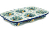 This Starry Night 11" Muffin Pan was handmade and hand decorated in Boleslawiec, Poland by skilled artisans according to old traditional methods. This is a Polish pottery Signature Unikat, which means that it has been hand painted with both sponges and brushes and it is signed by the artist who painted it. Unikat pieces are the most intricate works of art. Larger Unikat items take hours of very careful work to finish. This Polish stoneware is microwave, dishwasher, freezer, and oven safe up to 480°F. It does not contain lead or cadmium. It is part of the Starry Night Collection.