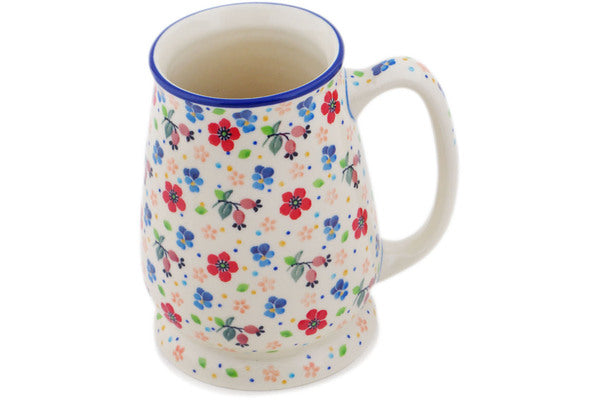 This Spring Meadow 34 oz Beer Mug was handmade and hand decorated in Boleslawiec, Poland by skilled artisans according to old traditional methods. This is a Polish pottery Signature Unikat, which means that it has been hand painted with both sponges and brushes and it is signed by the artist who painted it. Unikat pieces are the most intricate works of art. Larger Unikat items take hours of very careful work to finish. This Polish stoneware is microwave, dishwasher, freezer, and oven safe up to 480°F. It does not contain lead or cadmium. It is part of the Spring Meadow Collection.