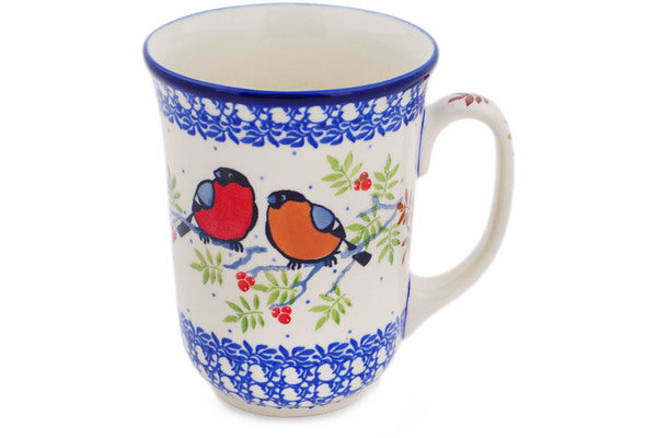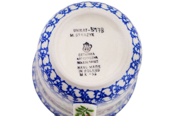 This Berries And Birds 17 oz Bistro Mug was handmade and hand decorated in Boleslawiec, Poland by skilled artisans according to old traditional methods. This is a Polish pottery Signature Unikat, which means that it has been hand painted with both sponges and brushes and it is signed by the artist who painted it. Unikat pieces are the most intricate works of art. Larger Unikat items take hours of very careful work to finish. This Polish stoneware is microwave, dishwasher, freezer, and oven safe up to 480°F. It does not contain lead or cadmium. It is part of the Berries And Birds Collection.