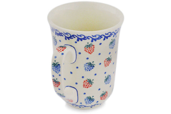This Berries And Dots 17 oz Bistro Mug was handmade and hand decorated in Boleslawiec, Poland by skilled artisans according to old traditional methods. This Polish stoneware is microwave, dishwasher, freezer, and oven safe up to 480°F. It does not contain lead or cadmium. It is part of the Berries And Dots Collection.