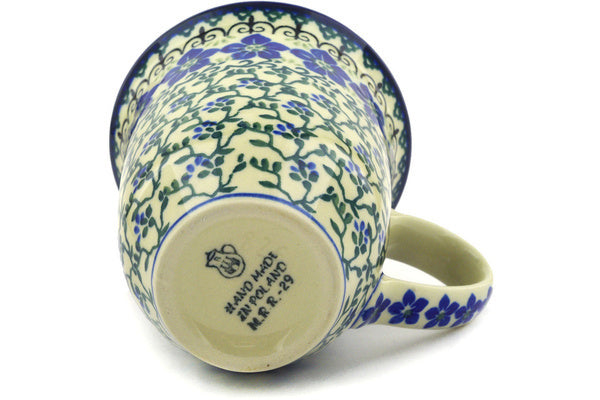 This Blue Dogwood 17 oz Bistro Mug was handmade and hand decorated in Boleslawiec, Poland by skilled artisans according to old traditional methods. This Polish stoneware is microwave, dishwasher, freezer, and oven safe up to 480°F. It does not contain lead or cadmium. It is part of the Blue Dogwood Collection.