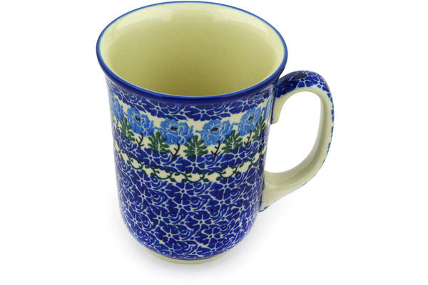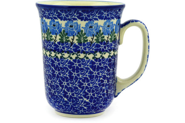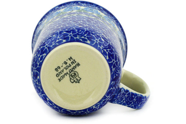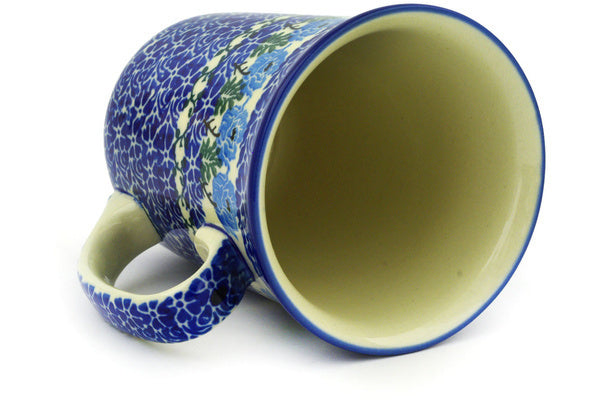 This Blue Rosette Wreath 17 oz Bistro Mug was handmade and hand decorated in Boleslawiec, Poland by skilled artisans according to old traditional methods. This Polish stoneware is microwave, dishwasher, freezer, and oven safe up to 480°F. It does not contain lead or cadmium. It is part of the Blue Rosette Wreath Collection.