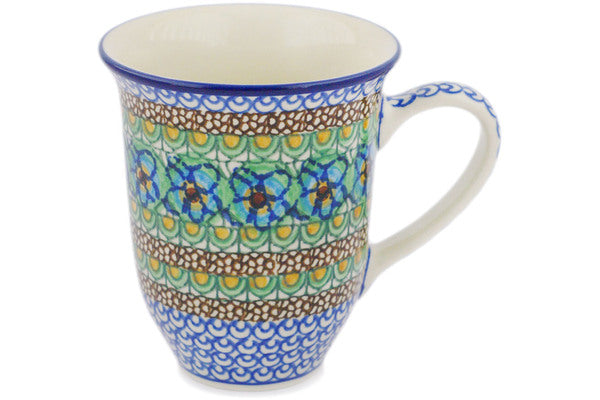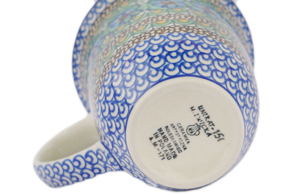 This Mardi Gras 17 oz Bistro Mug was handmade and hand decorated in Boleslawiec, Poland by skilled artisans according to old traditional methods. This is a Polish pottery Signature Unikat, which means that it has been hand painted with both sponges and brushes and it is signed by the artist who painted it. Unikat pieces are the most intricate works of art. Larger Unikat items take hours of very careful work to finish. This Polish stoneware is microwave, dishwasher, freezer, and oven safe up to 480°F. It does not contain lead or cadmium. It is part of the Mardi Gras Collection.