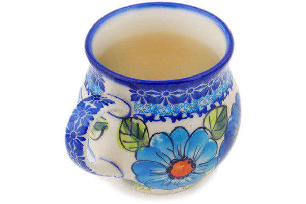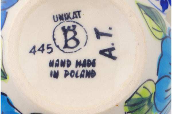 This Bold Blue Poppies 12 oz Bubble Mug was handmade and hand decorated in Boleslawiec, Poland by skilled artisans according to old traditional methods. This is a Polish pottery Signature Unikat, which means that it has been hand painted with both sponges and brushes and it is signed by the artist who painted it. Unikat pieces are the most intricate works of art. Larger Unikat items take hours of very careful work to finish. This Polish stoneware is microwave, dishwasher, freezer, and oven safe up to 480°F. It does not contain lead or cadmium. It is part of the Bold Blue Poppies Collection.