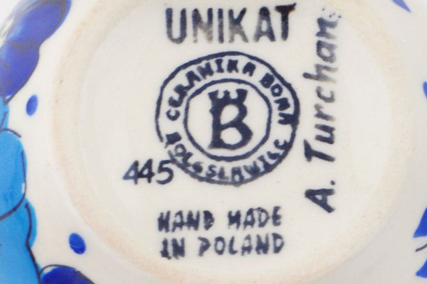 This Endless Summer 12 oz Bubble Mug was handmade and hand decorated in Boleslawiec, Poland by skilled artisans according to old traditional methods. This is a Polish pottery Signature Unikat, which means that it has been hand painted with both sponges and brushes and it is signed by the artist who painted it. Unikat pieces are the most intricate works of art. Larger Unikat items take hours of very careful work to finish. This Polish stoneware is microwave, dishwasher, freezer, and oven safe up to 480°F. It does not contain lead or cadmium. It is part of the Endless Summer Collection.