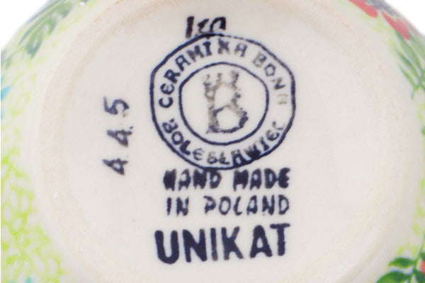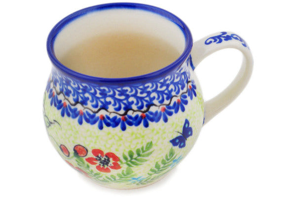 This Metamorphosis 12 oz Bubble Mug was handmade and hand decorated in Boleslawiec, Poland by skilled artisans according to old traditional methods. This Polish stoneware is microwave, dishwasher, freezer, and oven safe up to 480°F. It does not contain lead or cadmium. It is part of the Metamorphosis Collection.