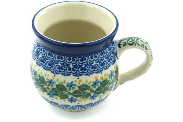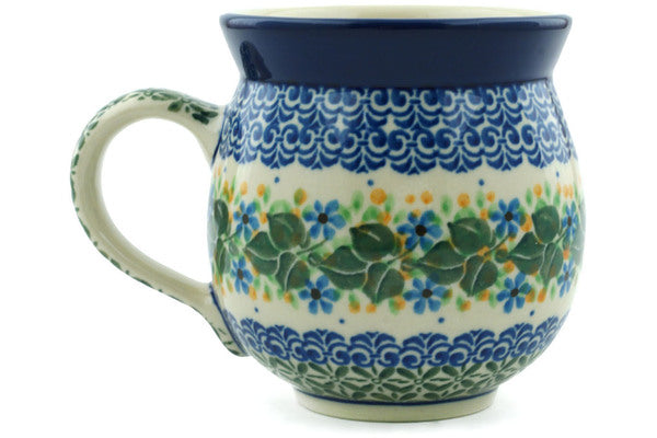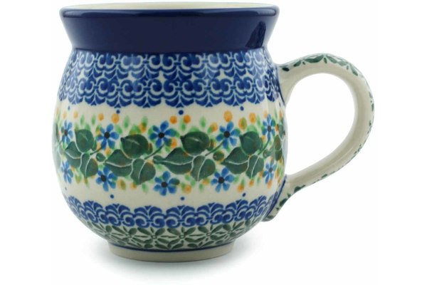 This Aster Wreath 12oz Bubble Mug was handmade and hand decorated in Boleslawiec, Poland by skilled artisans according to old traditional methods. This Polish stoneware is microwave, dishwasher, freezer, and oven safe up to 480°F. It does not contain lead or cadmium. It is part of the Aster Wreath Collection.