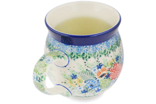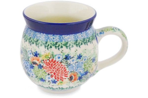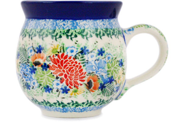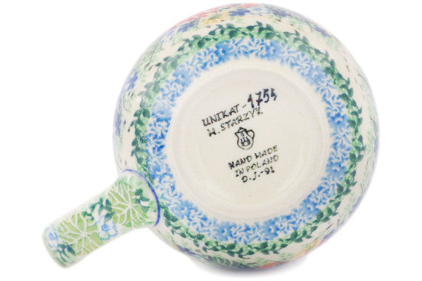 This La Memoire 12oz Bubble Mug was handmade and hand decorated in Boleslawiec, Poland by skilled artisans according to old traditional methods. This is a Polish pottery Signature Unikat, which means that it has been hand painted with both sponges and brushes and it is signed by the artist who painted it. Unikat pieces are the most intricate works of art. Larger Unikat items take hours of very careful work to finish. This Polish stoneware is microwave, dishwasher, freezer, and oven safe up to 480°F. It does not contain lead or cadmium. It is part of the La Memoire Collection.