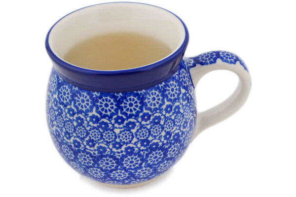 This Wagon Wheel 12oz Bubble Mug was handmade and hand decorated in Boleslawiec, Poland by skilled artisans according to old traditional methods. This Polish stoneware is microwave, dishwasher, freezer, and oven safe up to 480°F. It does not contain lead or cadmium. It is part of the Wagon Wheel Collection.