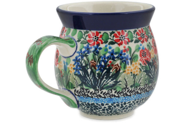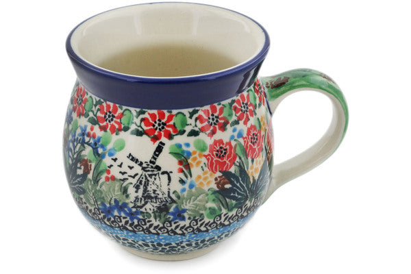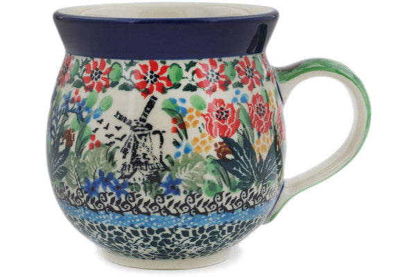 This Windmill Meadow 12oz Bubble Mug was handmade and hand decorated in Boleslawiec, Poland by skilled artisans according to old traditional methods. This is a Polish pottery Signature Unikat, which means that it has been hand painted with both sponges and brushes and it is signed by the artist who painted it. Unikat pieces are the most intricate works of art. Larger Unikat items take hours of very careful work to finish. This Polish stoneware is microwave, dishwasher, freezer, and oven safe up to 480°F. It does not contain lead or cadmium. It is part of the Windmill Meadow Collection.