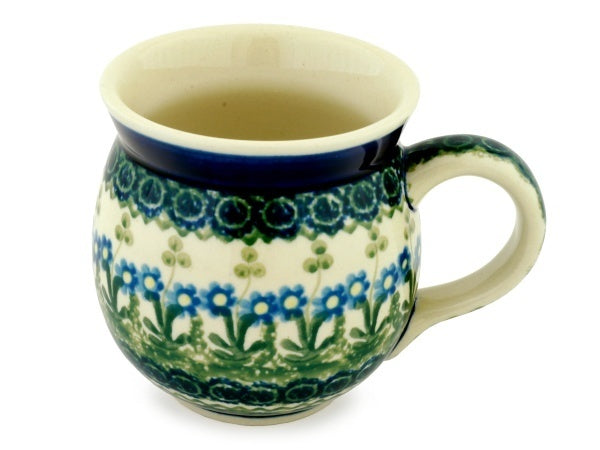This Blue Daisy Circle 16 oz Bubble Mug was handmade and hand decorated in Boleslawiec, Poland by skilled artisans according to old traditional methods. This Polish stoneware is microwave, dishwasher, freezer, and oven safe up to 480°F. It does not contain lead or cadmium. It is part of the Blue Daisy Circle Collection.