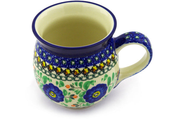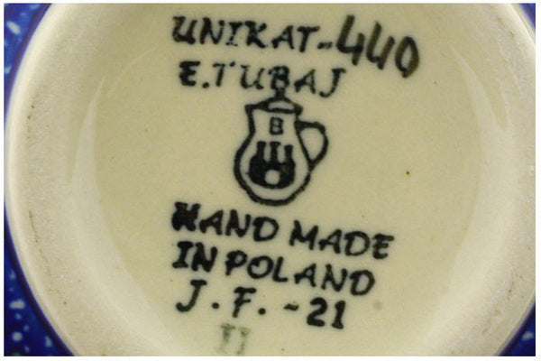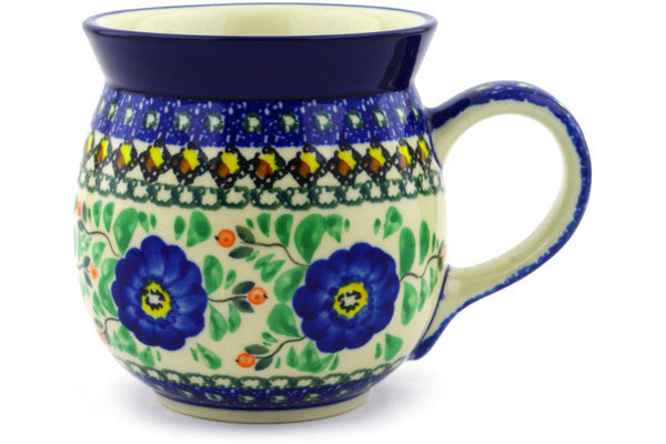 This Cobalt Poppies 16 oz Bubble Mug was handmade and hand decorated in Boleslawiec, Poland by skilled artisans according to old traditional methods. This is a Polish pottery Signature Unikat, which means that it has been hand painted with both sponges and brushes and it is signed by the artist who painted it. Unikat pieces are the most intricate works of art. Larger Unikat items take hours of very careful work to finish. This Polish stoneware is microwave, dishwasher, freezer, and oven safe up to 480°F. It does not contain lead or cadmium. It is part of the Cobalt Poppies Collection.