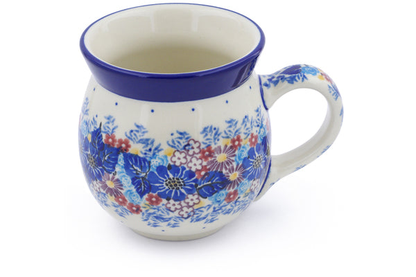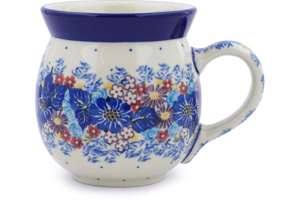 This Flower Wreath 16 oz Bubble Mug was handmade and hand decorated in Boleslawiec, Poland by skilled artisans according to old traditional methods. This is a Polish pottery Signature Unikat, which means that it has been hand painted with both sponges and brushes and it is signed by the artist who painted it. Unikat pieces are the most intricate works of art. Larger Unikat items take hours of very careful work to finish. This Polish stoneware is microwave, dishwasher, freezer, and oven safe up to 480°F. It does not contain lead or cadmium. It is part of the Flower Wreath Collection.