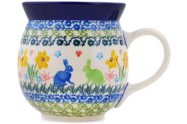 This Hopping In Love 16 oz Bubble Mug was handmade and hand decorated in Boleslawiec, Poland by skilled artisans according to old traditional methods. This Polish stoneware is microwave, dishwasher, freezer, and oven safe up to 480°F. It does not contain lead or cadmium. It is part of the Hopping In Love Collection.