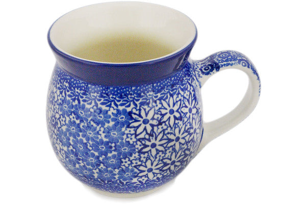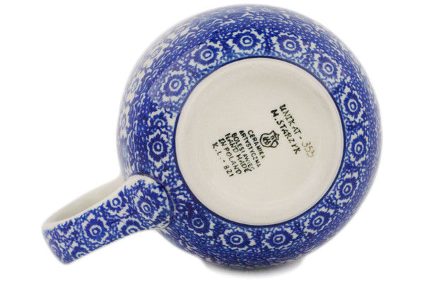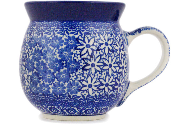 This Moody Blues 16 oz Bubble Mug was handmade and hand decorated in Boleslawiec, Poland by skilled artisans according to old traditional methods. This is a Polish pottery Signature Unikat, which means that it has been hand painted with both sponges and brushes and it is signed by the artist who painted it. Unikat pieces are the most intricate works of art. Larger Unikat items take hours of very careful work to finish. This Polish stoneware is microwave, dishwasher, freezer, and oven safe up to 480°F. It does not contain lead or cadmium. It is part of the Moody Blues Collection.