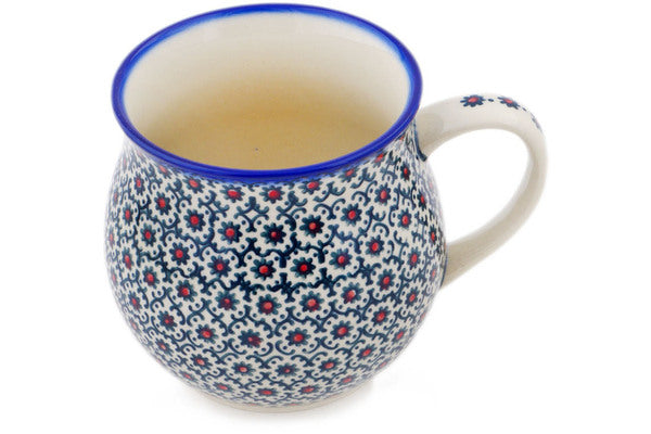 This Field Of Black Daisies 21 oz Bubble Mug was handmade and hand decorated in Boleslawiec, Poland by skilled artisans according to old traditional methods. This Polish stoneware is microwave, dishwasher, freezer, and oven safe up to 480°F. It does not contain lead or cadmium. It is part of the Field Of Black Daisies Collection.