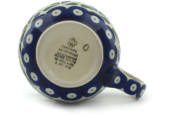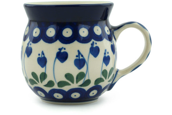 This Bleeding Heart Peacock 8 oz Bubble Mug was handmade and hand decorated in Boleslawiec, Poland by skilled artisans according to old traditional methods. This Polish stoneware is microwave, dishwasher, freezer, and oven safe up to 480°F. It does not contain lead or cadmium. It is part of the Bleeding Heart Peacock Collection.