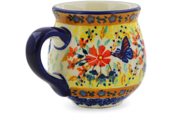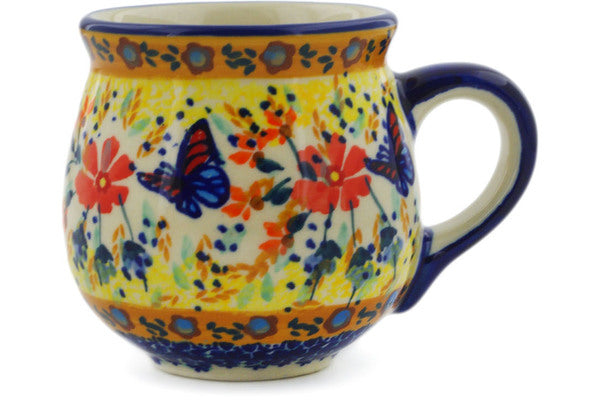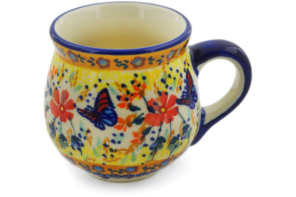 This Butterfly Summer Garden 8 oz Bubble Mug was handmade and hand decorated in Boleslawiec, Poland by skilled artisans according to old traditional methods. This is a Polish pottery Signature Unikat, which means that it has been hand painted with both sponges and brushes and it is signed by the artist who painted it. Unikat pieces are the most intricate works of art. Larger Unikat items take hours of very careful work to finish. This Polish stoneware is microwave, dishwasher, freezer, and oven safe up to 480°F. It does not contain lead or cadmium. It is part of the Butterfly Summer Garden Collection.