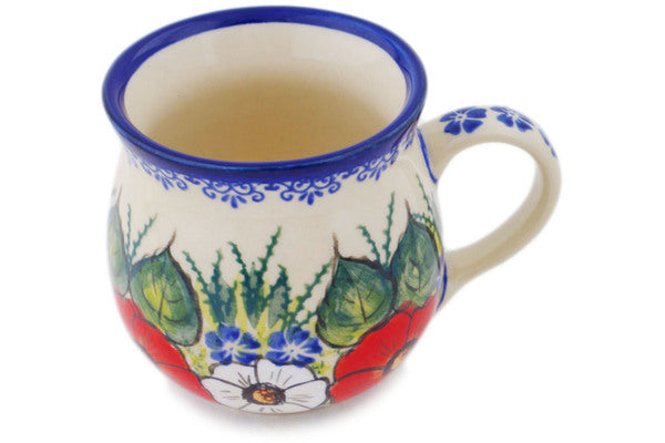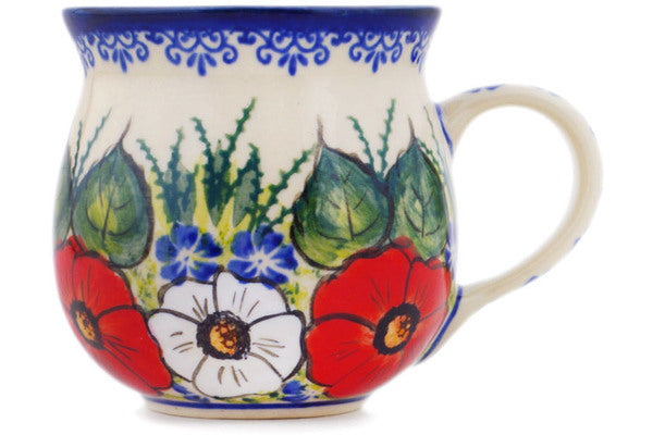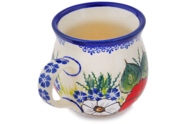 This Vibrant Day 8 oz Bubble Mug was handmade and hand decorated in Boleslawiec, Poland by skilled artisans according to old traditional methods. This is a Polish pottery Signature Unikat, which means that it has been hand painted with both sponges and brushes and it is signed by the artist who painted it. Unikat pieces are the most intricate works of art. Larger Unikat items take hours of very careful work to finish. This Polish stoneware is microwave, dishwasher, freezer, and oven safe up to 480°F. It does not contain lead or cadmium. It is part of the Vibrant Day Collection.