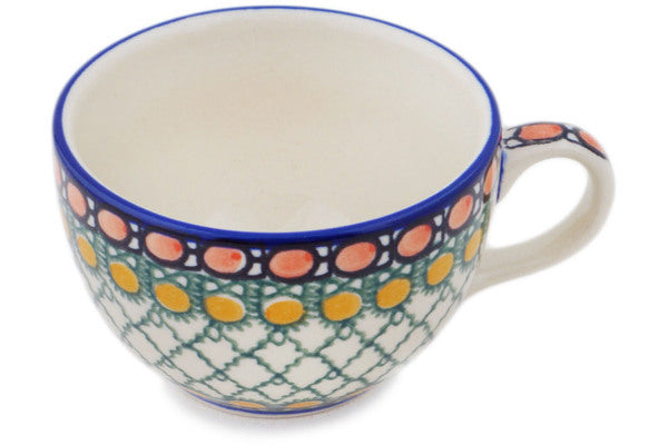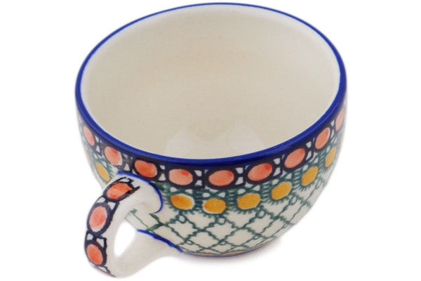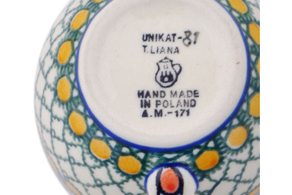 This Orange Tranquility 3 oz Cup was handmade and hand decorated in Boleslawiec, Poland by skilled artisans according to old traditional methods. This is a Polish pottery Signature Unikat, which means that it has been hand painted with both sponges and brushes and it is signed by the artist who painted it. Unikat pieces are the most intricate works of art. Larger Unikat items take hours of very careful work to finish. This Polish stoneware is microwave, dishwasher, freezer, and oven safe up to 480°F. It does not contain lead or cadmium. It is part of the Orange Tranquility Collection.