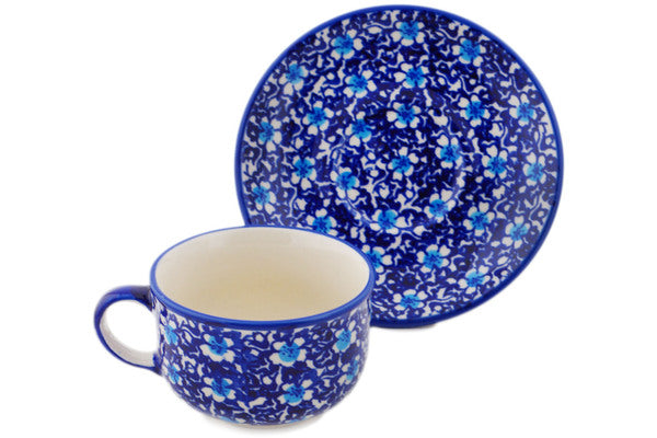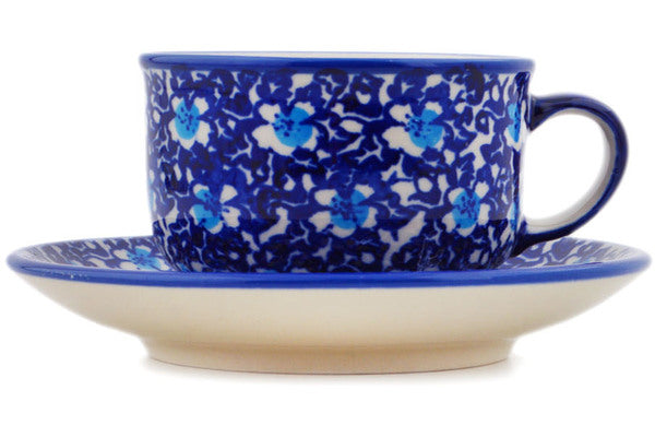 This Flowers On The Lake 7 oz Cup with Saucer was handmade and hand decorated in Boleslawiec, Poland by skilled artisans according to old traditional methods. This Polish stoneware is microwave, dishwasher, freezer, and oven safe up to 480°F. It does not contain lead or cadmium. It is part of the Flowers On The Lake Collection.