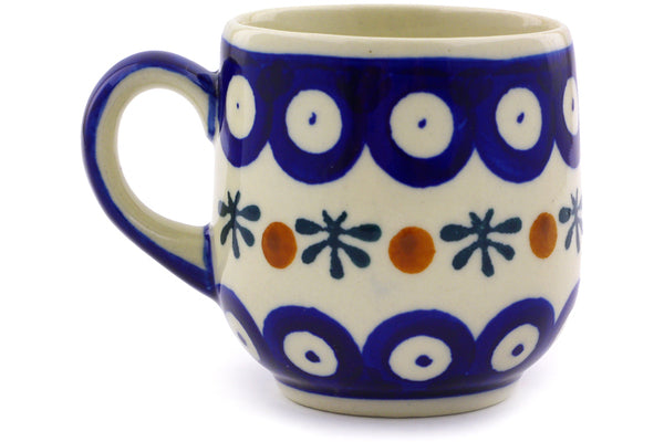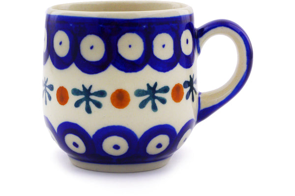 This Mosquito 4 oz Espresso Cup was handmade and hand decorated in Boleslawiec, Poland by skilled artisans according to old traditional methods. This Polish stoneware is microwave, dishwasher, freezer, and oven safe up to 480°F. It does not contain lead or cadmium. It is part of the Mosquito Collection.