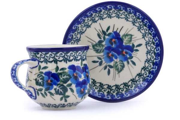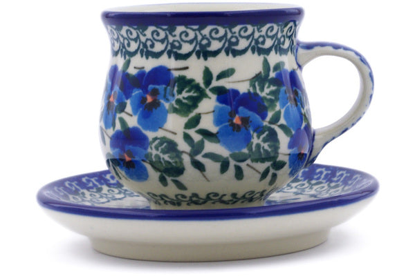 Espresso Cup with Saucer 3 oz Blue Pansy Theme