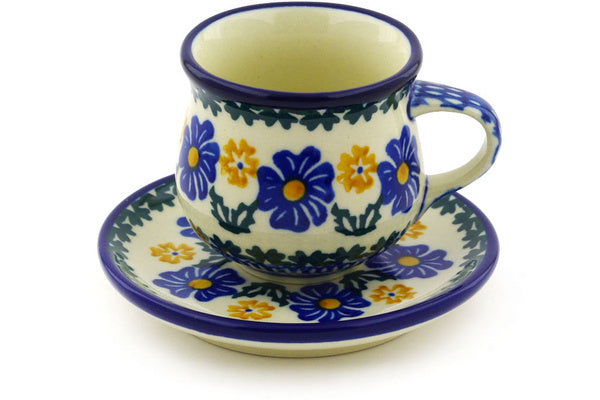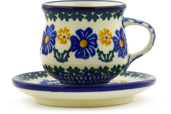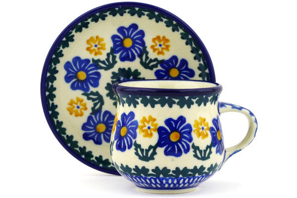 This Garden Seeds 3 oz Espresso Cup with Saucer was handmade and hand decorated in Boleslawiec, Poland by skilled artisans according to old traditional methods. This Polish stoneware is microwave, dishwasher, freezer, and oven safe up to 480°F. It does not contain lead or cadmium. It is part of the Garden Seeds Collection.