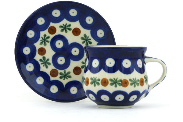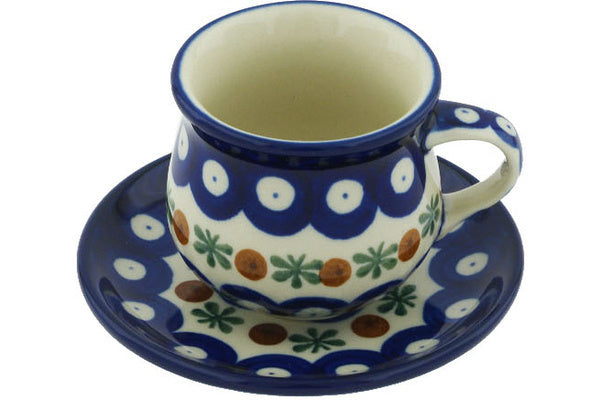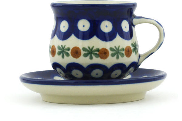 This Mosquito 3 oz Espresso Cup with Saucer was handmade and hand decorated in Boleslawiec, Poland by skilled artisans according to old traditional methods. This Polish stoneware is microwave, dishwasher, freezer, and oven safe up to 480°F. It does not contain lead or cadmium. It is part of the Mosquito Collection.