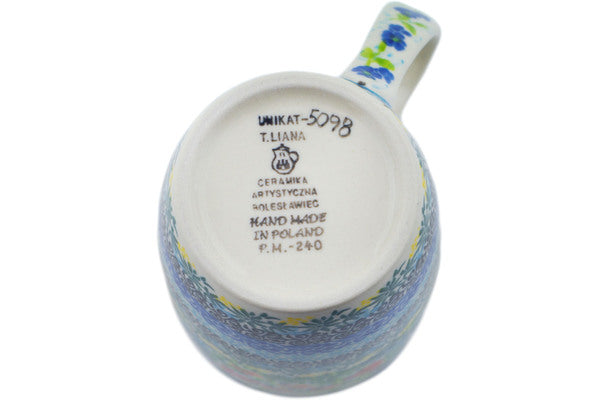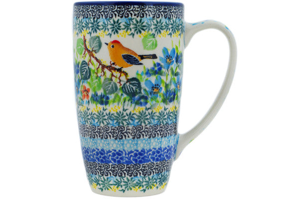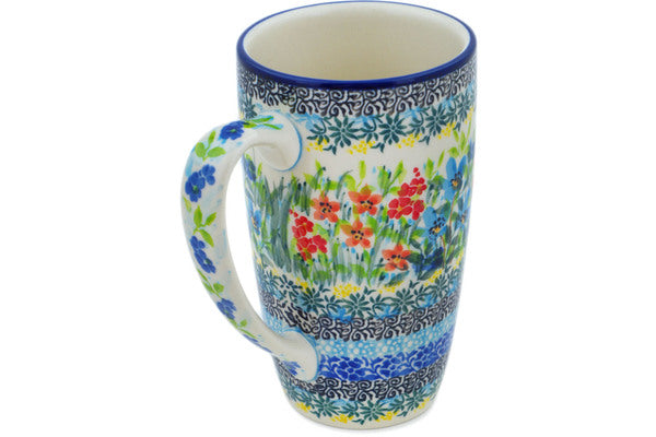 This Relaxing Day 14 oz Latte Mug was handmade and hand decorated in Boleslawiec, Poland by skilled artisans according to old traditional methods. This is a Polish pottery Signature Unikat, which means that it has been hand painted with both sponges and brushes and it is signed by the artist who painted it. Unikat pieces are the most intricate works of art. Larger Unikat items take hours of very careful work to finish. This Polish stoneware is microwave, dishwasher, freezer, and oven safe up to 480°F. It does not contain lead or cadmium. It is part of the Relaxing Day Collection.