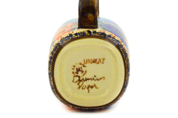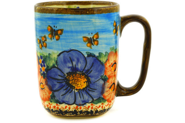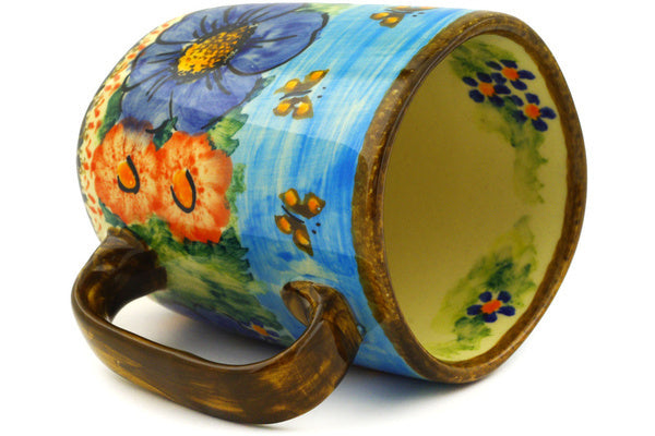 This Blue Garden 10 oz Mug was handmade and hand decorated in Boleslawiec, Poland by skilled artisans according to old traditional methods. This is a Polish pottery Signature Unikat, which means that it has been hand painted with both sponges and brushes and it is signed by the artist who painted it. Unikat pieces are the most intricate works of art. Larger Unikat items take hours of very careful work to finish. This Polish stoneware is microwave, dishwasher, freezer, and oven safe up to 480°F. It does not contain lead or cadmium. It is part of the Blue Garden Collection.