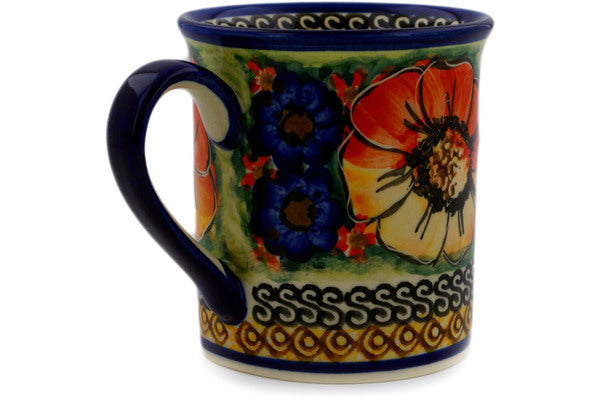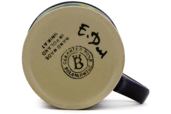This Bright Beauty 10 oz Mug was handmade and hand decorated in Boleslawiec, Poland by skilled artisans according to old traditional methods. This is a Polish pottery Signature Unikat, which means that it has been hand painted with both sponges and brushes and it is signed by the artist who painted it. Unikat pieces are the most intricate works of art. Larger Unikat items take hours of very careful work to finish. This Polish stoneware is microwave, dishwasher, freezer, and oven safe up to 480°F. It does not contain lead or cadmium. It is part of the Bright Beauty Collection.