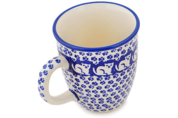 This Meow 10 oz Mug was handmade and hand decorated in Boleslawiec, Poland by skilled artisans according to old traditional methods. This Polish stoneware is microwave, dishwasher, freezer, and oven safe up to 480°F. It does not contain lead or cadmium. It is part of the Meow Collection.