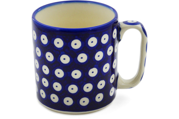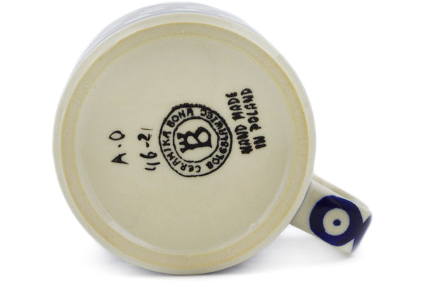 This Blue Eyed Peacock 13 oz Mug was handmade and hand decorated in Boleslawiec, Poland by skilled artisans according to old traditional methods. This Polish stoneware is microwave, dishwasher, freezer, and oven safe up to 480°F. It does not contain lead or cadmium. It is part of the Blue Eyed Peacock Collection.