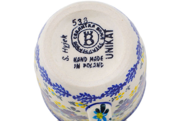 This Cornflower Meadow 12 oz Mug was handmade and hand decorated in Boleslawiec, Poland by skilled artisans according to old traditional methods. This Polish stoneware is microwave, dishwasher, freezer, and oven safe up to 480°F. It does not contain lead or cadmium. It is part of the Cornflower Meadow Collection.