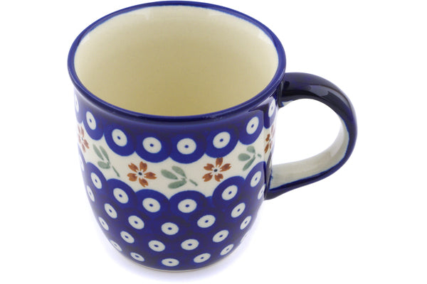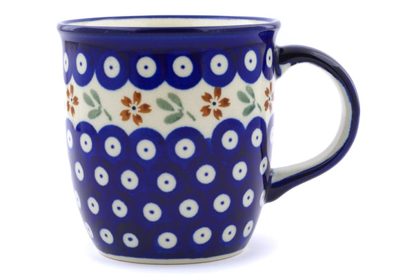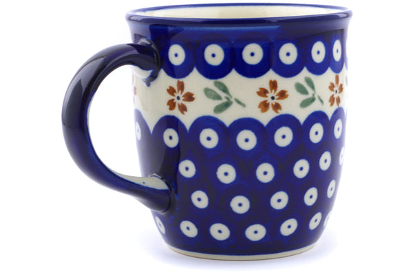 This Red Daisy Peacock 12 oz Mug was handmade and hand decorated in Boleslawiec, Poland by skilled artisans according to old traditional methods. This Polish stoneware is microwave, dishwasher, freezer, and oven safe up to 480°F. It does not contain lead or cadmium. It is part of the Red Daisy Peacock Collection.