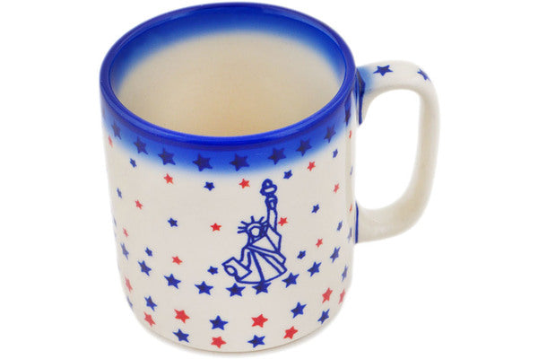 This Lady Liberty 13 oz Mug was handmade and hand decorated in Boleslawiec, Poland by skilled artisans according to old traditional methods. This Polish stoneware is microwave, dishwasher, freezer, and oven safe up to 480°F. It does not contain lead or cadmium. It is part of the Lady Liberty Collection.