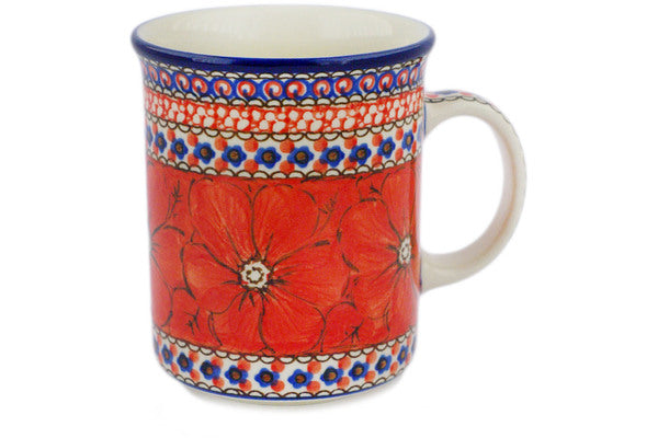 This Crimson Poppies 20 oz Mug was handmade and hand decorated in Boleslawiec, Poland by skilled artisans according to old traditional methods. This is a Polish pottery Signature Unikat, which means that it has been hand painted with both sponges and brushes and it is signed by the artist who painted it. Unikat pieces are the most intricate works of art. Larger Unikat items take hours of very careful work to finish. This Polish stoneware is microwave, dishwasher, freezer, and oven safe up to 480°F. It does not contain lead or cadmium. It is part of the Crimson Poppies Collection.